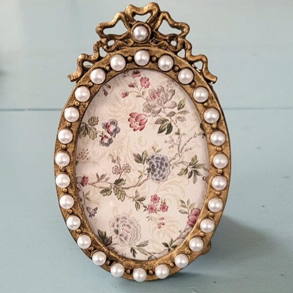 Fotolijstje ovaal goudkleurig strikje. Zeer elegant en verfijnd.