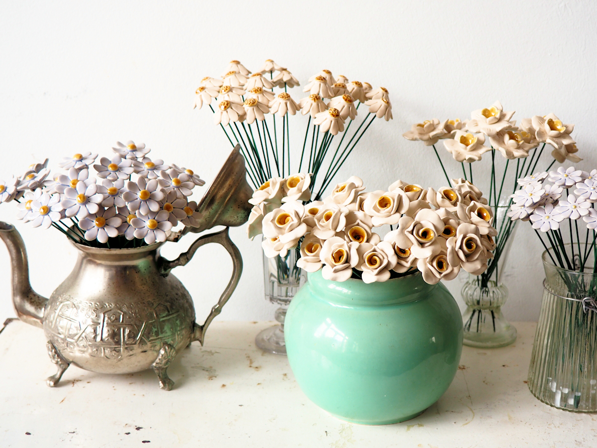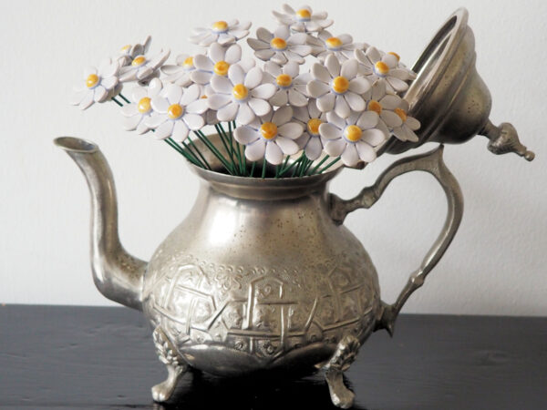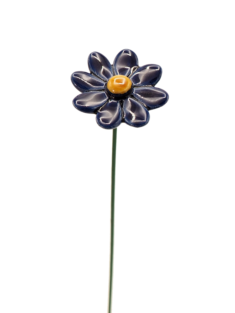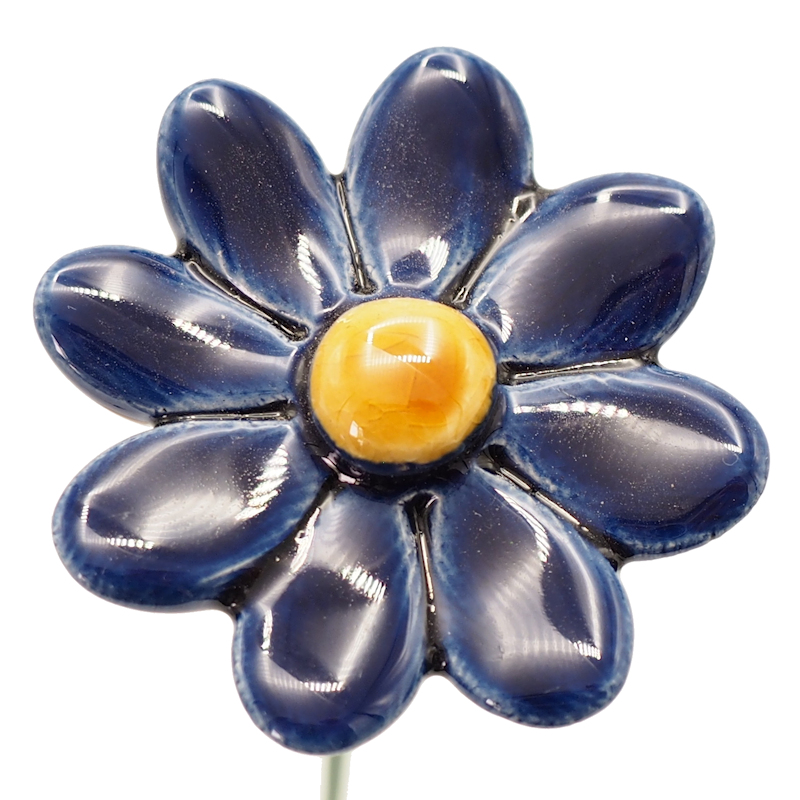 Keramiek Madeliefje donker blauw op prikker. Voor binnen en buiten.