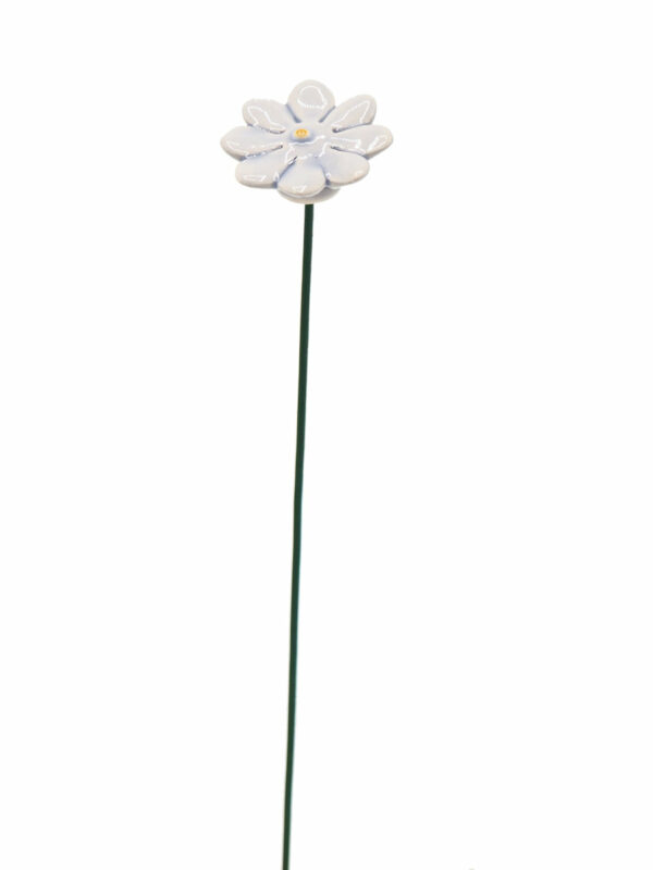 Keramieken bloem Madeliefje licht blauw klein op prikker