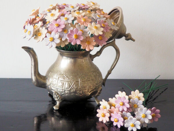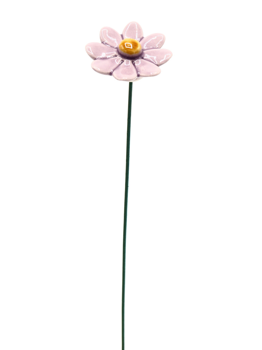 Keramieken bloem Madeliefje lila op prikker