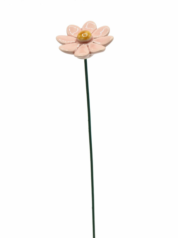 Keramieken bloem Madeliefje roze op prikker. Voor binnen en buiten.