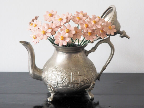 Keramieken bloem Madeliefje roze op prikker