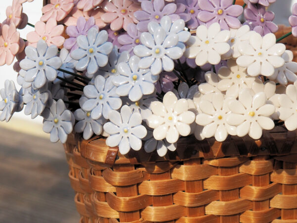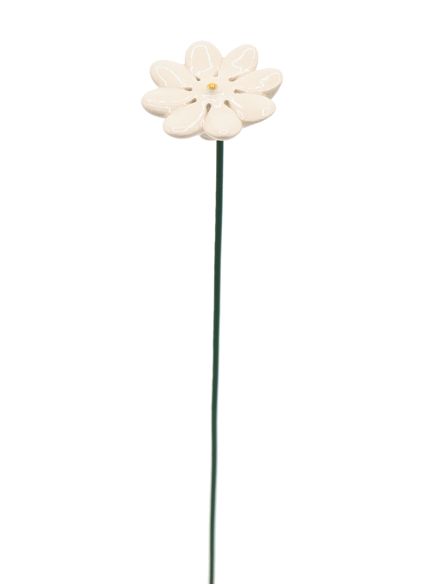 Keramieken bloem Madeliefje wit klein op prikker. Voor binnen en buiten.
