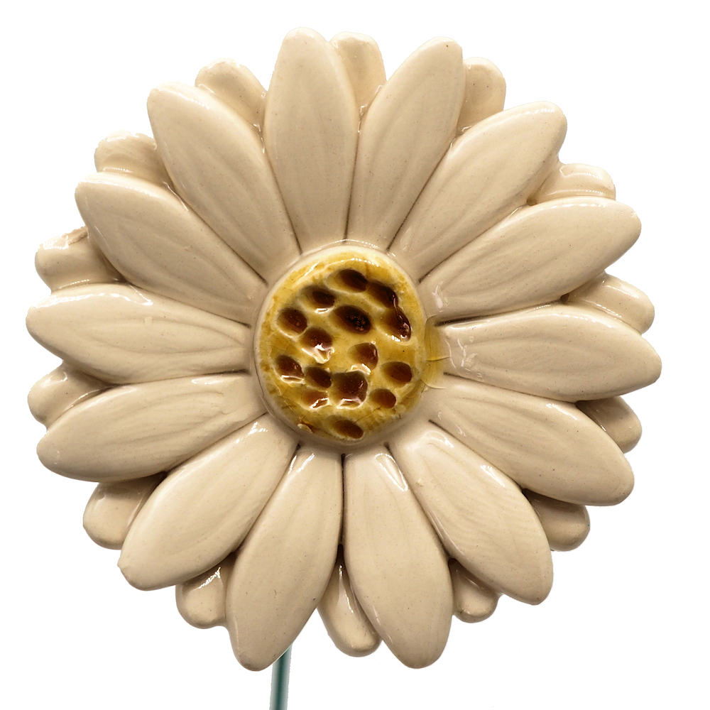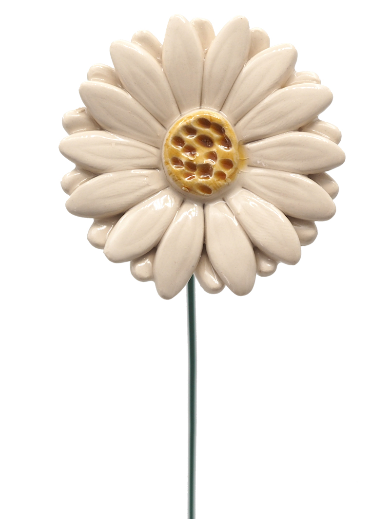 Keramieken Gerbera wit op prikker. Prachtige mooie volle bloem. Ook te verkrijgen in het licht roze.