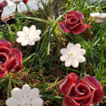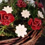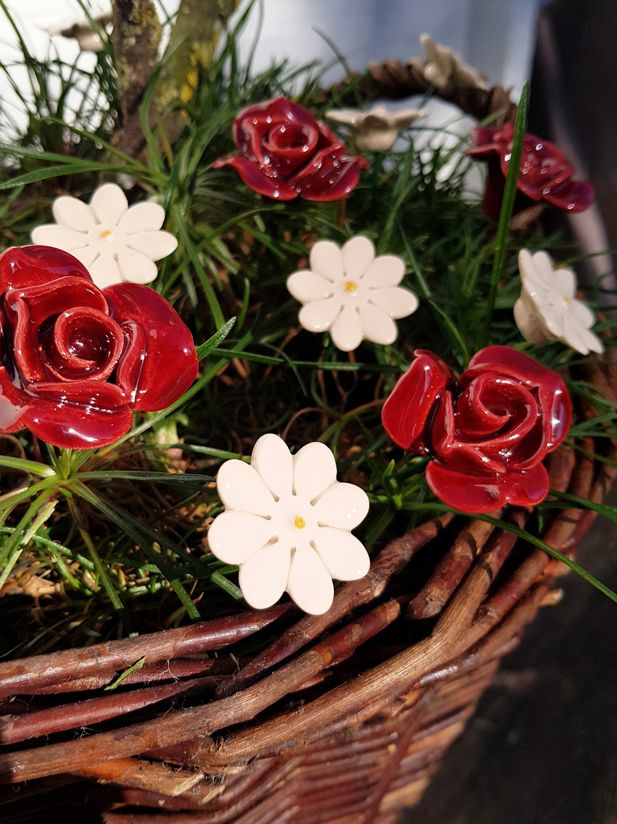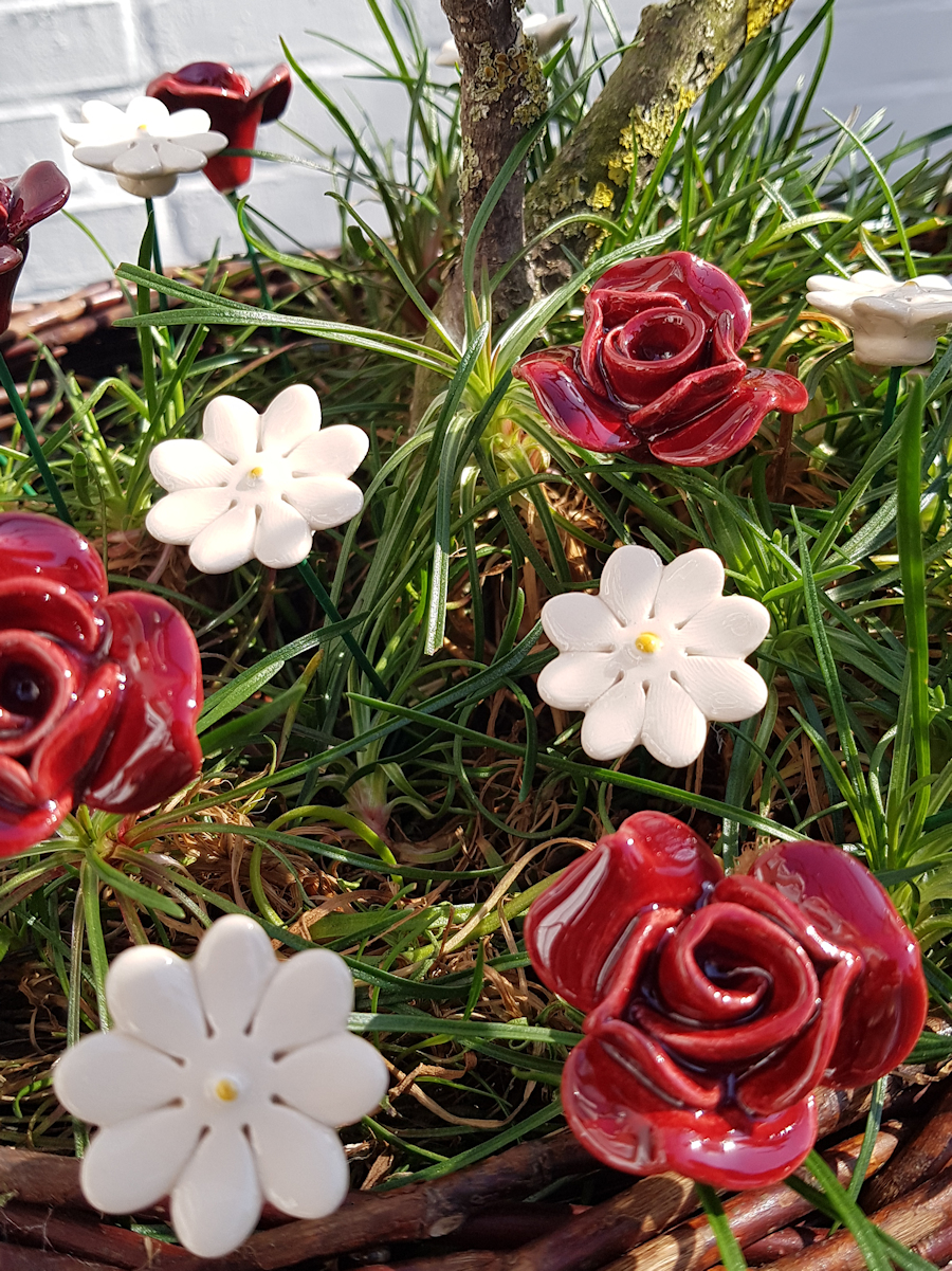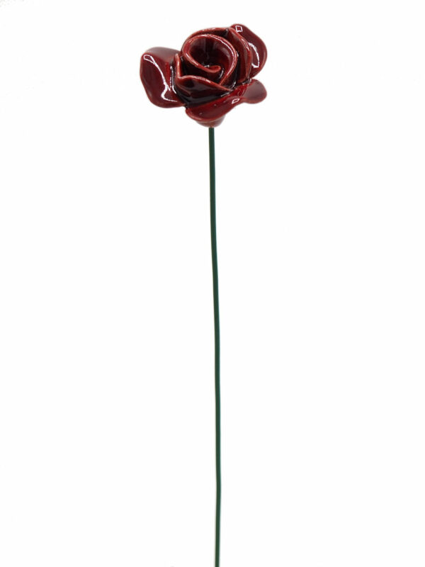Keramische bloem Roos rood op prikker