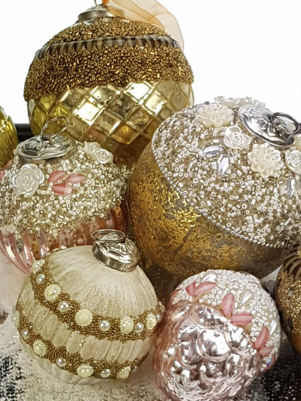 Alle decoraties zijn met de hand gemaakt. Deze ballen zijn echte juweeltjes.