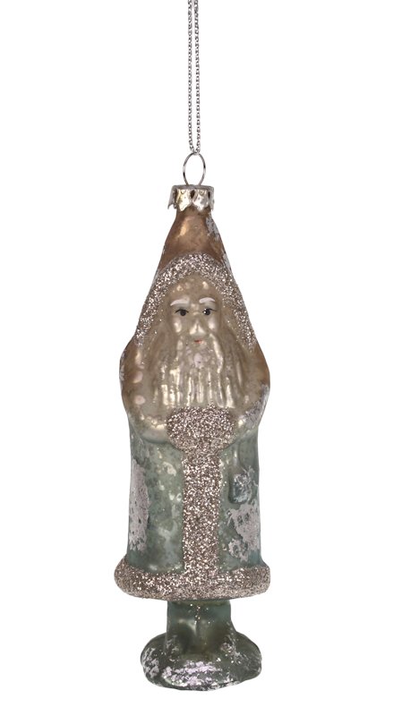 Prachtige kerstbal in de vorm van een kerstman. Deze nostalgische kerstman is uitgevoerd in de kleur oud blauw wat verloopt naar zilverkleurig.