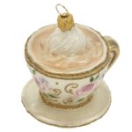 Een prachtig klein kop en schoteltje gemaakt van glas. Mooi gedecoreerd. Origineel voor in de kerstboom.