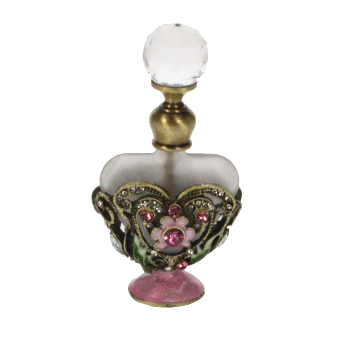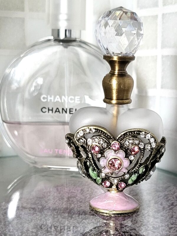 Parfumflesje bloementjes zachtroze geëmailleerd