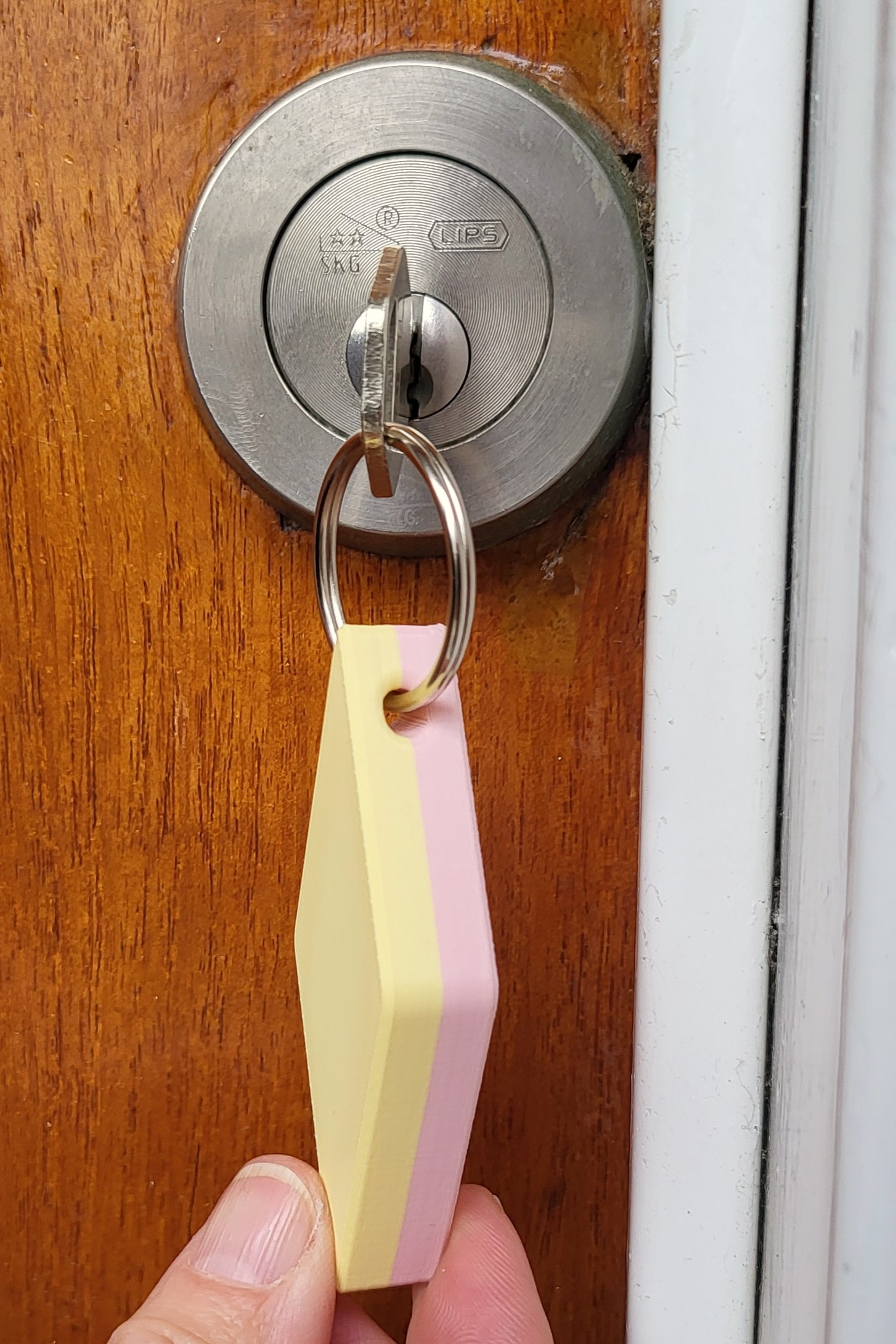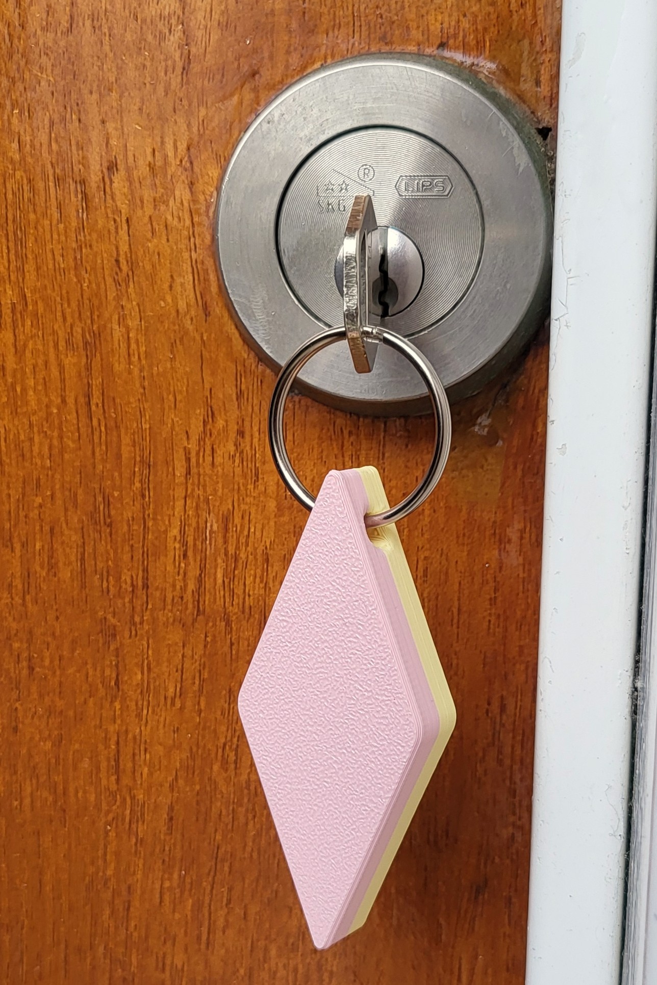 Sleutelhanger Ruitspek roze-geel