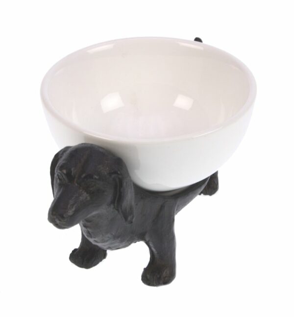Teckel met bakje van keramiek. Versier je tafel met dit teckel bakje. Leuk om te vullen met chocolades of nootjes.