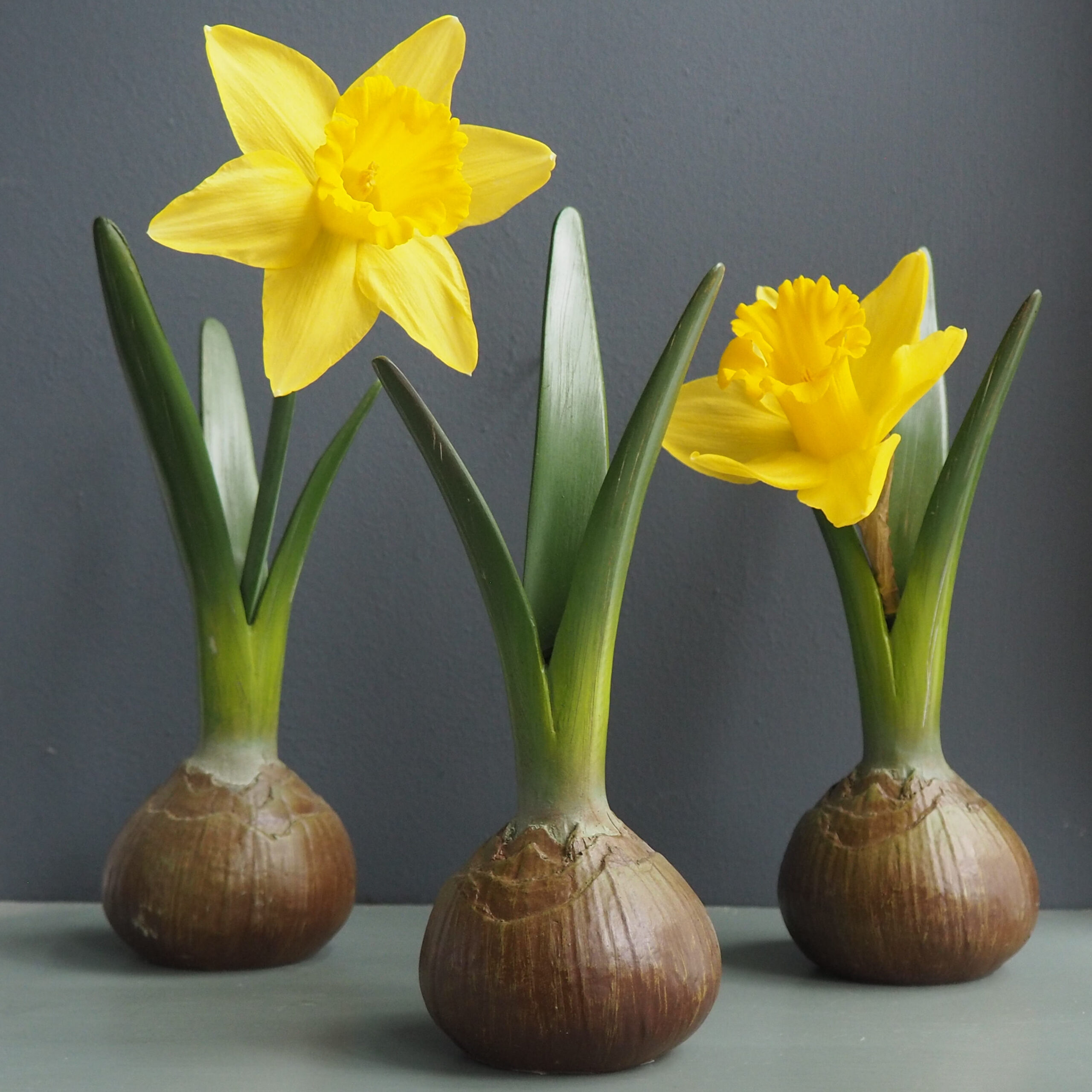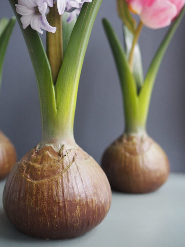 Vaasje bloembol. Je zou het bijna niet verwachten maar het is echt een vaasje. Water erin en samen met de eerste voorjaarsbloemen is het een prachtig geheel.