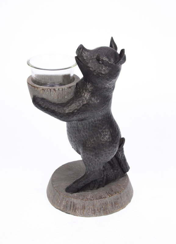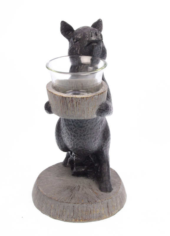 Dit parmantige varkentje houdt trouw het waxinelichtje omhoog.
