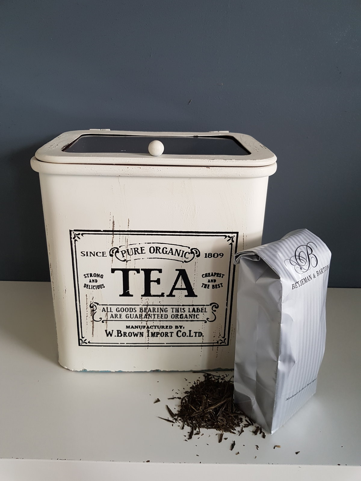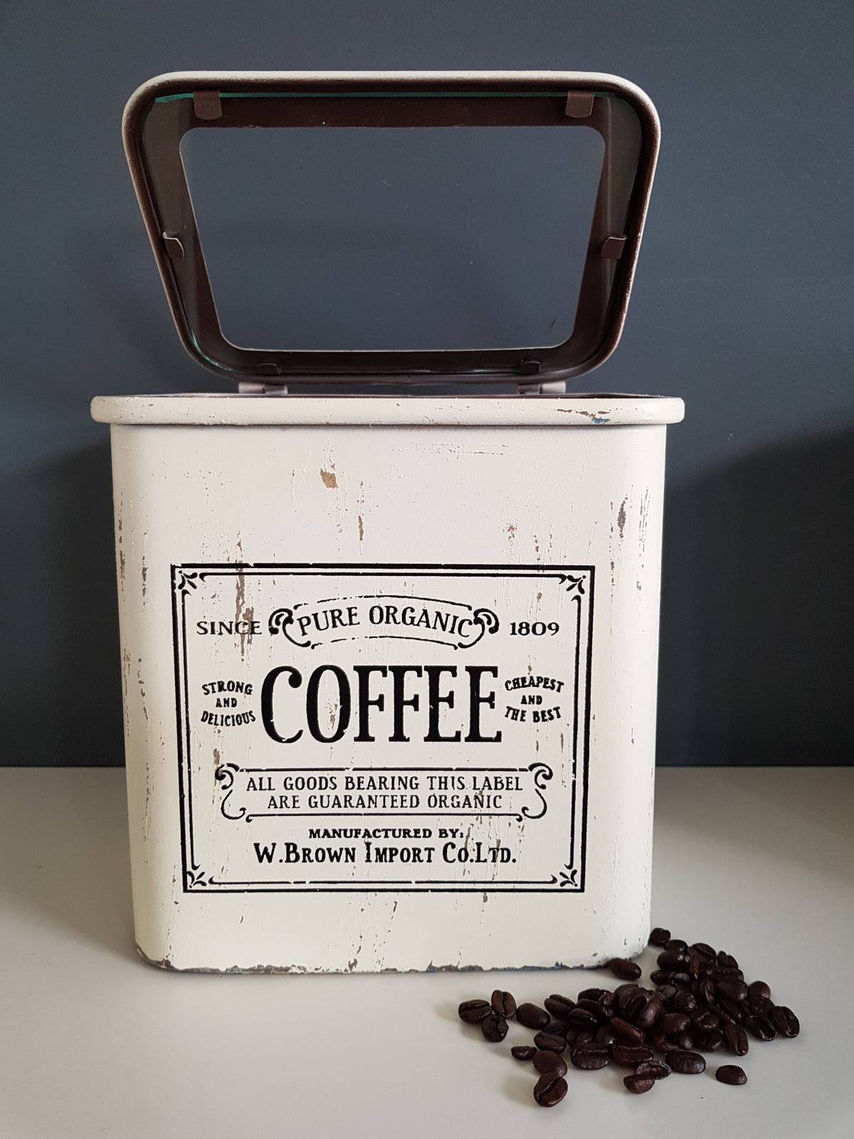 In deze trommel dient de koffie of thee wel in de originele verpakken te worden opgeslagen.